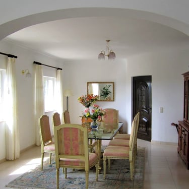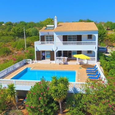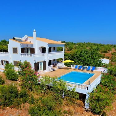 The villa has four bedrooms, located in a peaceful area of Malhao, with a view of the sea and the countryside. It is surrounded by more than 6,000 square meters of private land and is a Mediterranean oasis of calm and comfort. There are three restaurant/bars that you can reach on foot. Santa Margarida is only 15 minutes away. Santo Estavao is a five minute drive from the villa and has a Bar/Restaurant and two local supermarkets with everything you need. The beach of Tavira is about 4.5 kms from the villa. The villa is 4 kms from the town of Tavira and 27kms from Faro Airport. The villa has two double bedrooms with private bathrooms and two twin bedrooms, all with built-in closets. It can accommodate 8 people comfortably. All the bedrooms have balconies, and three of them face the swimming pool. There is also a family bathroom and a guest bathroom. The lounge is spacious and has Satellite TV, a DVD player, WiFi and a Log fire for cozy winter nights. The lounge has French windows that open to the pool area. There is also a large sitting and dining room, a fully equipped kitchen with modern appliances and a laundry room with a washing machine and a dishwasher. The villa is cleaned twice a week. Outside, there is a 10 x 5 meters swimming pool, a big patio including a BBQ and a bread oven area.